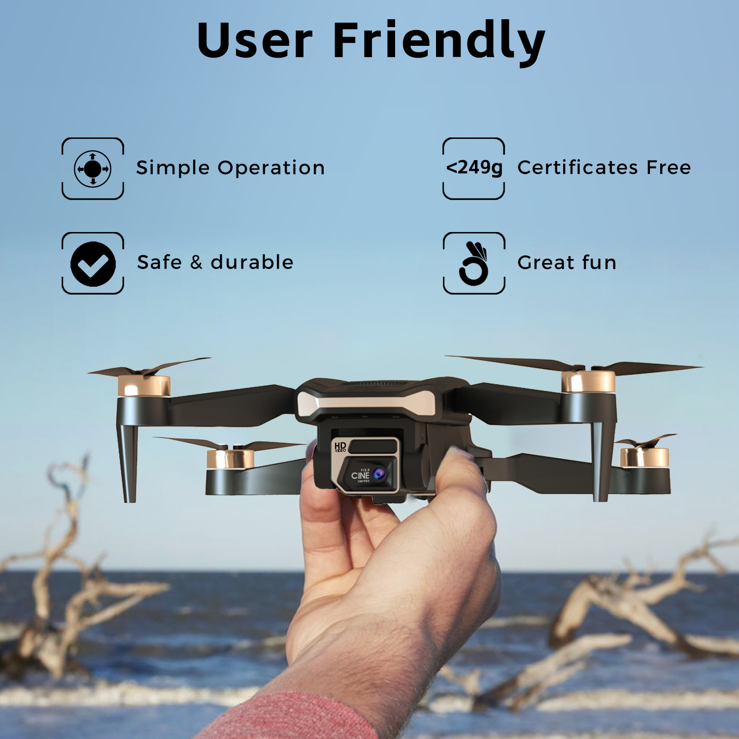 CHUBORY A77 drone, one of the best drones with camera for adults 4K and FPV can be used as a photography drone. A77 is extremely user-friendly that comes with One Key Start/Landing, Optical Flow Positioning, Altitude Hold, Follow Me, 3D Flips, Headless Mode, Speed Adjustment, Gesture Selfie and Trajectory Flight functions, adapts to all experience levels even for kids and beginners.